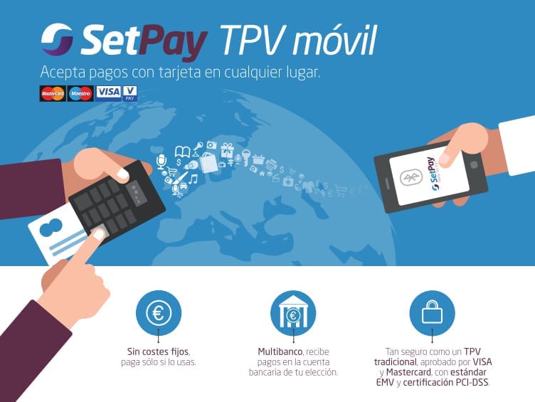 SetPay consiste en un pequeño lector de tarjetas que funciona con una aplicación para Smartphone y tabletas permitiendo aceptar pagos con tarjeta en cualquier momento y lugar.
